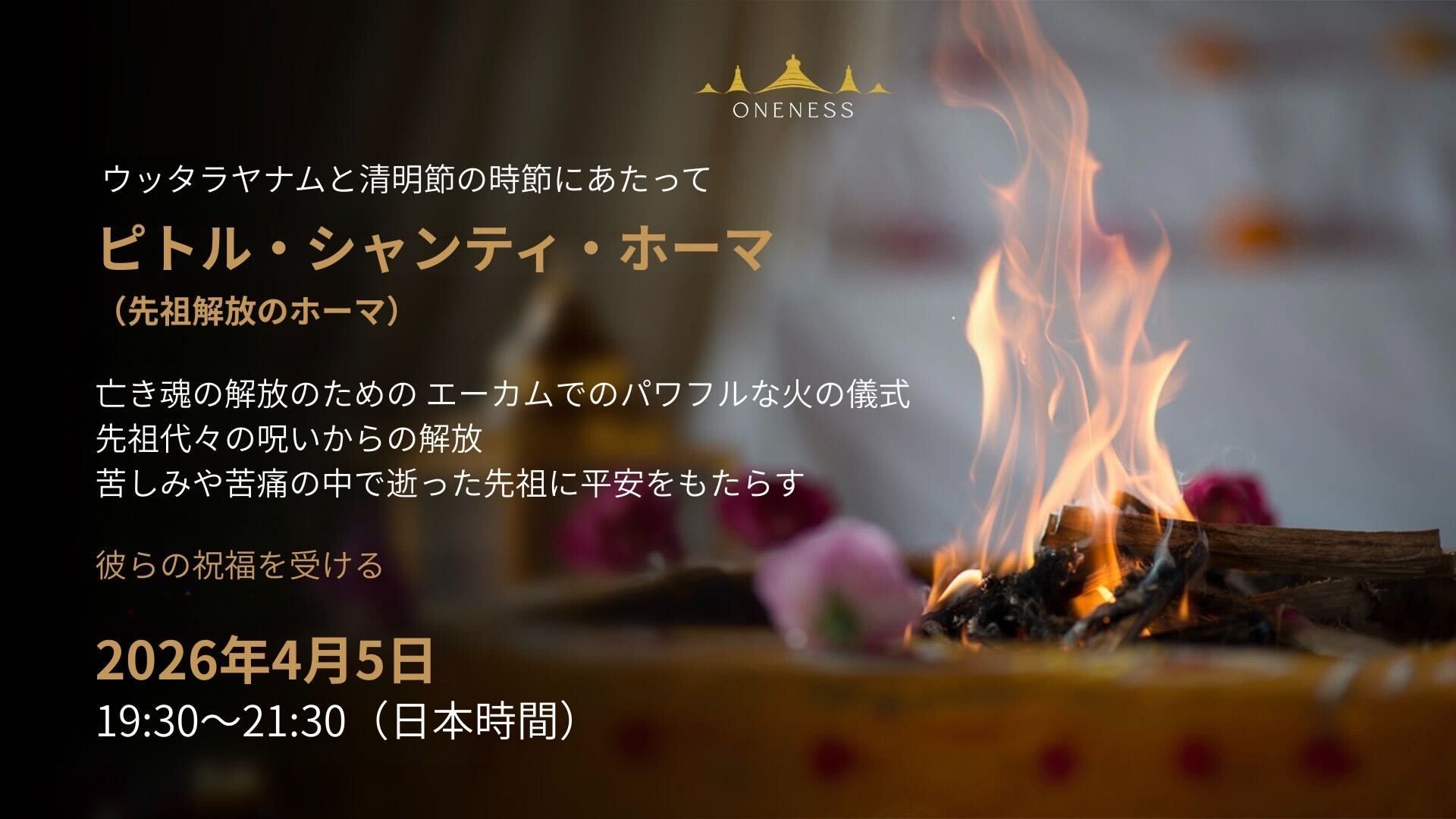 ウッタラヤナムとは、インド暦において太陽が北半球を移動する時期を指します。この時期は、ポジティブな変化、精神的成長、幸運の時期とされています。この期間に人生のあらゆる領域でポジティブな成長を促進するため、ピトル・シャンティ・ホーマを執り行います。清明節をお祝いになる方も、ご先祖様への敬意を表す方法として、このホーマを行いご先祖様の祝福を受けることができます。